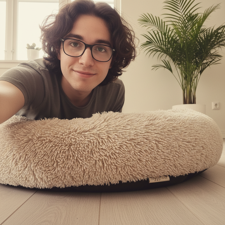 Se hur TryggTass förvandlar vilostunden till en uppslukande komfortupplevelse. Vår stödjande upphöjda kant och tjocka fyllning omsluter ditt husdjur för djupare och mer vilsam sömn. Svep igenom för att se stressfri avkoppling i varje bild.